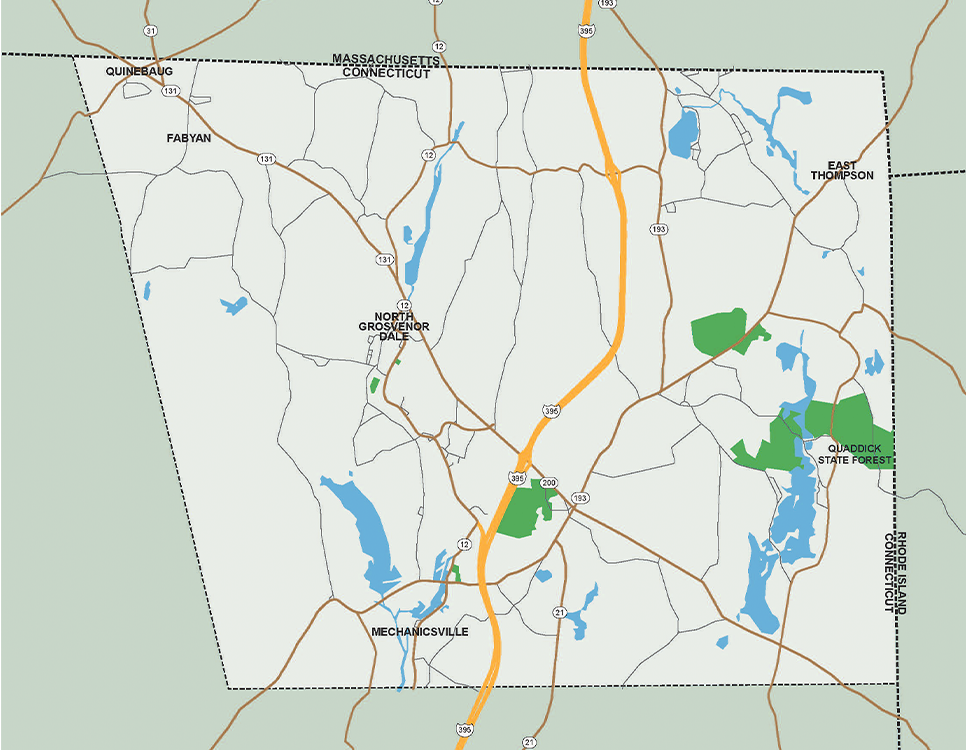 Thompson is located about an hour drive from three state capitals: Boston, MA, Hartford, CT and Providence, RI and 30 minutes from Worcester, MA, New England’s second largest city. Our unique location offers an advantage for businesses seeking easy access to major metropolitan areas in the region. We are a close-knit, neighborly community brimming with opportunities.